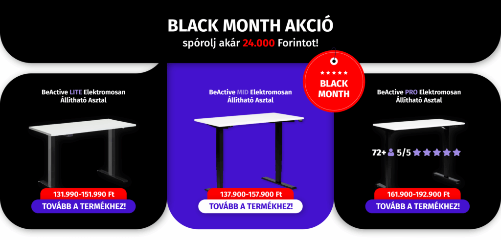 A BLACK MONTH alatt a legnépszerűbb BeActive termékeinket áraztuk le, hogy biztosan megtaláld a munkádhoz, otthonodhoz vagy irodádhoz legjobban illő megoldást.