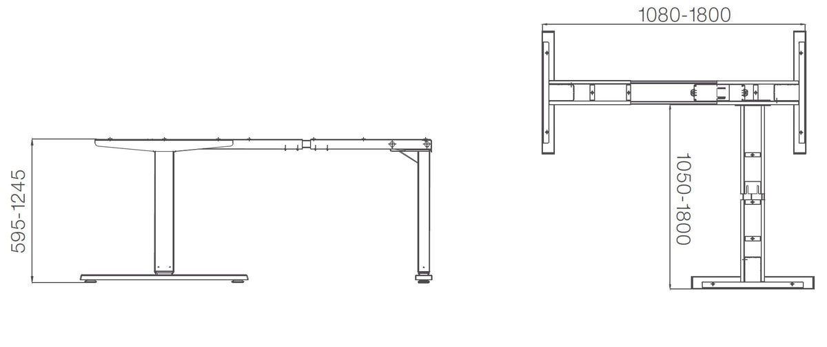 Magasság: min. 595 mm/max. 1245 mm (36mm-es asztallap esetén 631-1281mm)